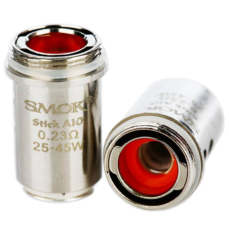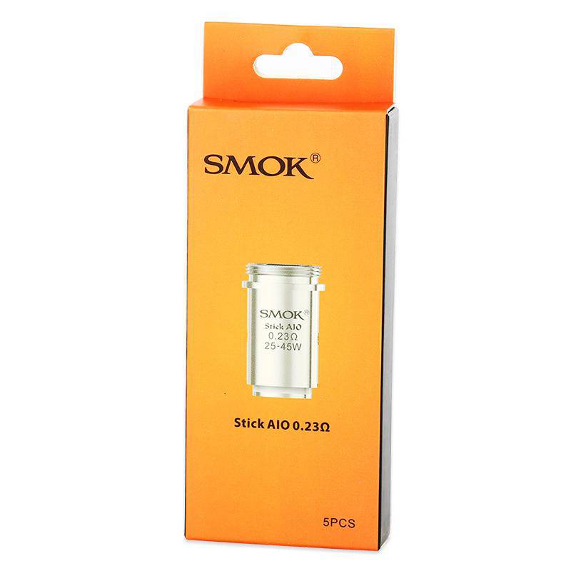 SMOK STICK AIO - 0.23ohm5 Pack Replacement CoilsReplacement coils for the SMOK Stick AIO. They are dual coil with bi-directional 4-hole which delivers massive clouds and smooth airflow. Available in 0.23ohm and 0.6ohmSPECSAvailable in 0.23ohm and 0.6ohmMassive clouds and smooth airflowStable vapor chasingBalance e-Juice wicking via bi-directional 4-holeContents:5 pack of SMOK Stick AIO Replacement..